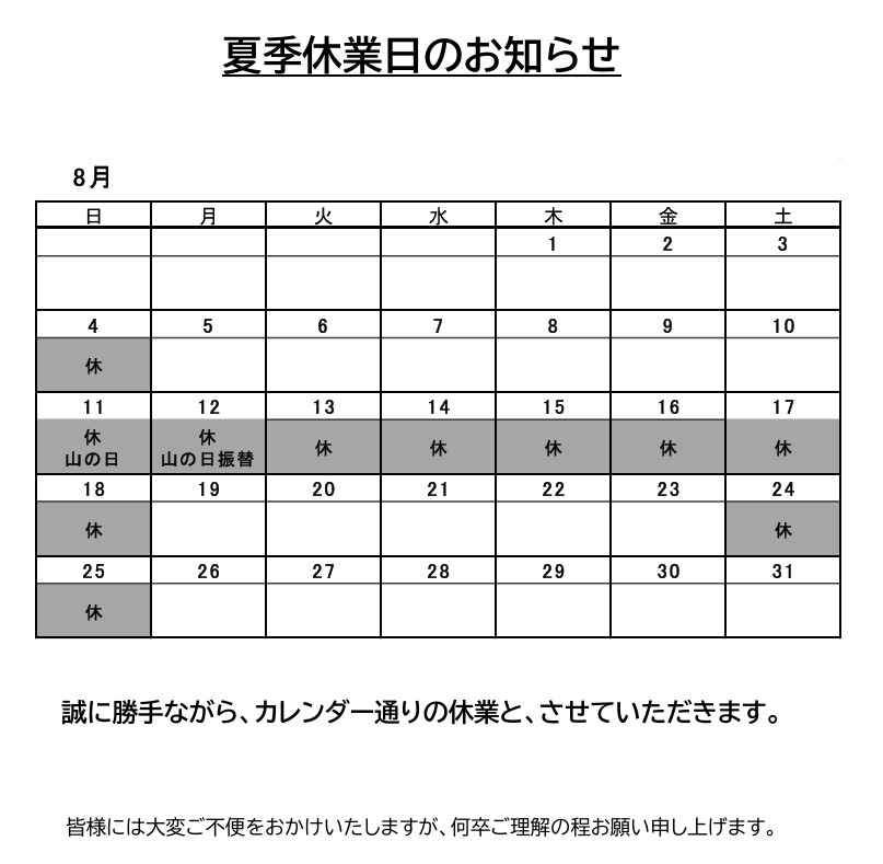 休み明けの商品発送は、8/19(月)から対応させていただきます。