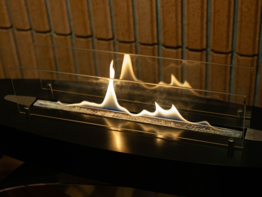 エタノール暖炉前にて使用される耐熱ガラスとして設置されました。