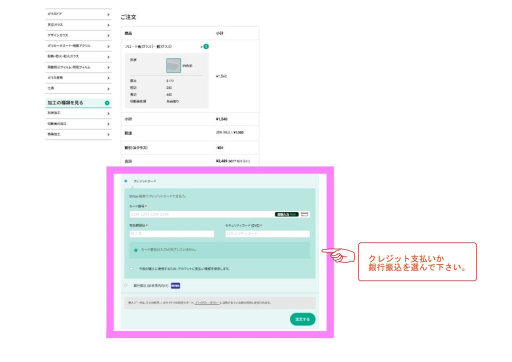 ご入金いただいた金額が確認でき次第、ガラスの切断、加工の製作となります。