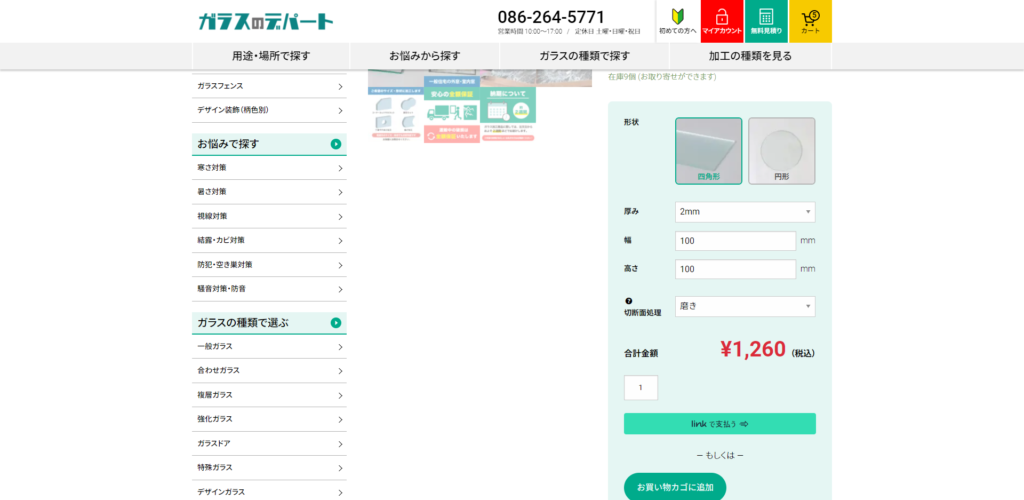 ガラスのデパートでは、即購入が可能なものとお問い合わせ(お見積り)が必要な商品があります。