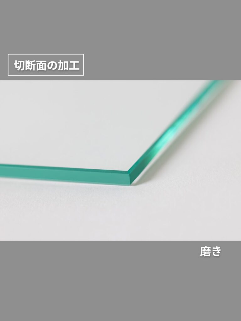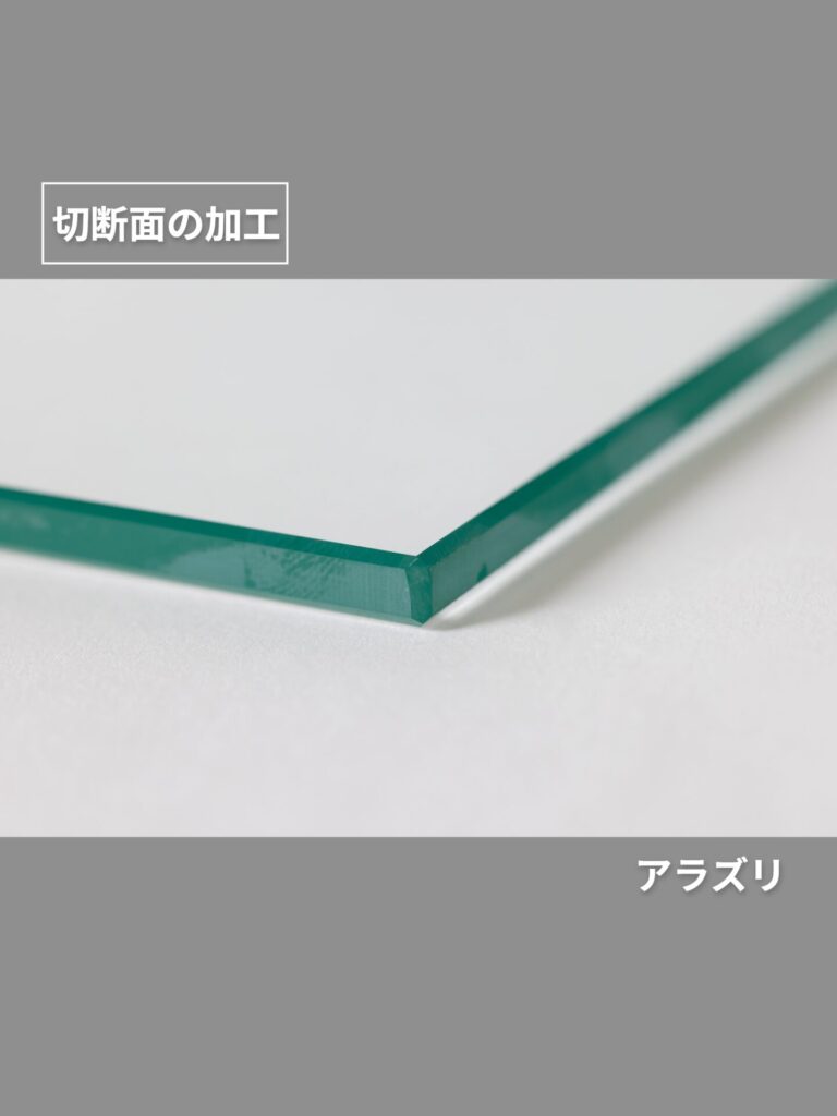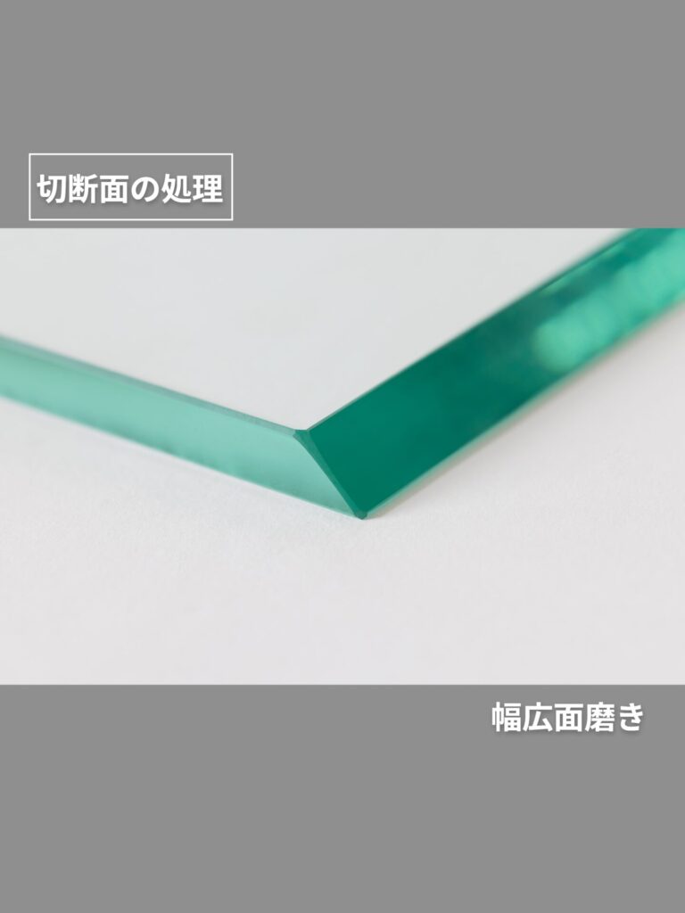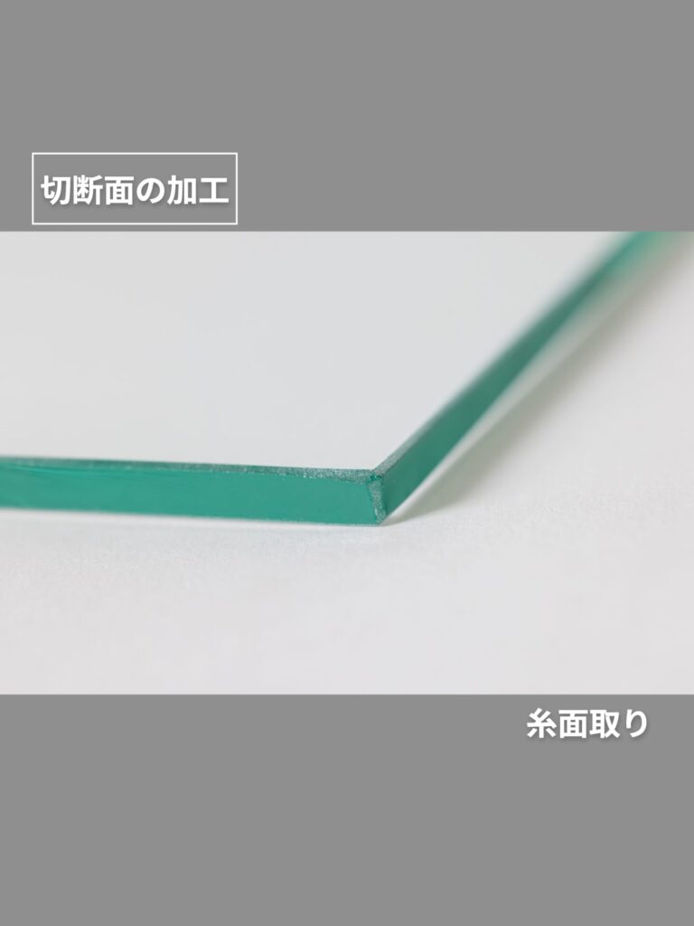 もっとも一般的な切断処理方法で、切断面の角部分を1㎜~1.5㎜程度の面を取って落とし、綺麗に磨いた状態です。