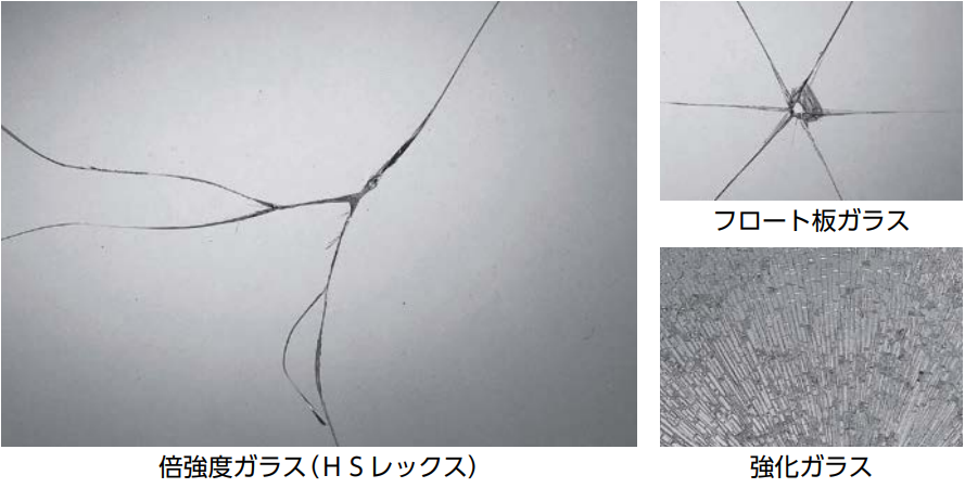 - フロートガラスと同様な割れ方をするが破片はサッシに留まる