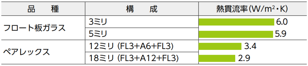 | フロート板ガラス | 3ミリ6.0 | 5ミリ5.9 |