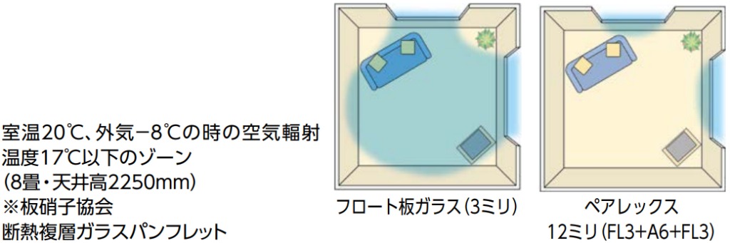 冬、暖房をしているのに感じる窓際でのヒンヤリ感を軽減し、不快感が少なくなります。