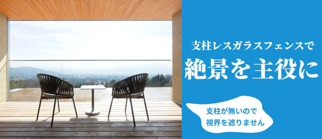 ガラスとガラスの継ぎ目に支柱がないので、景観を邪魔することなくガラスのフェンスを作ることができます。景観を主役にできるので、バリアフリーにも採用されています。