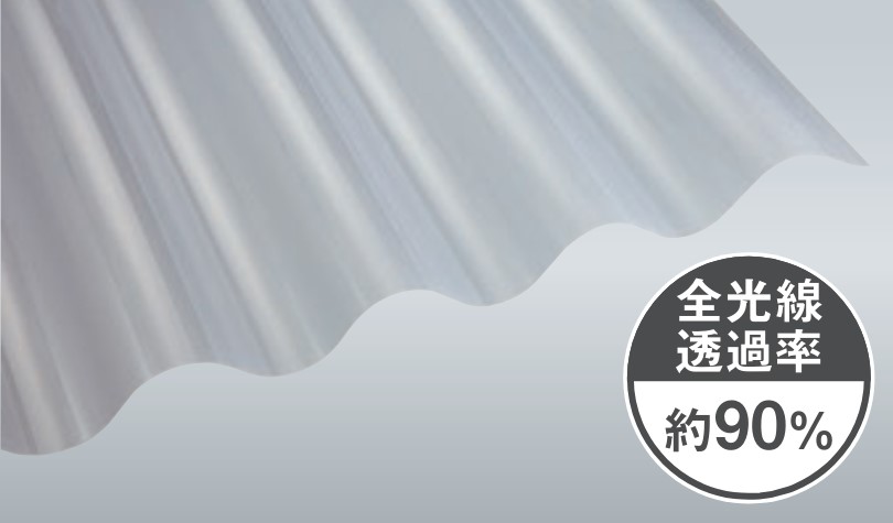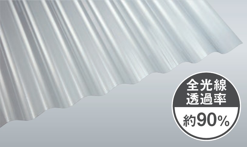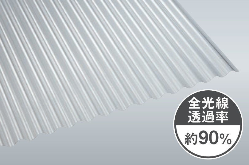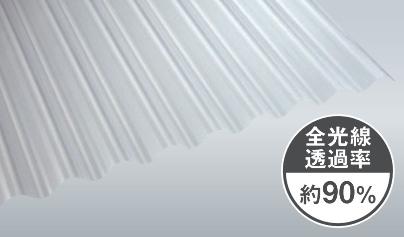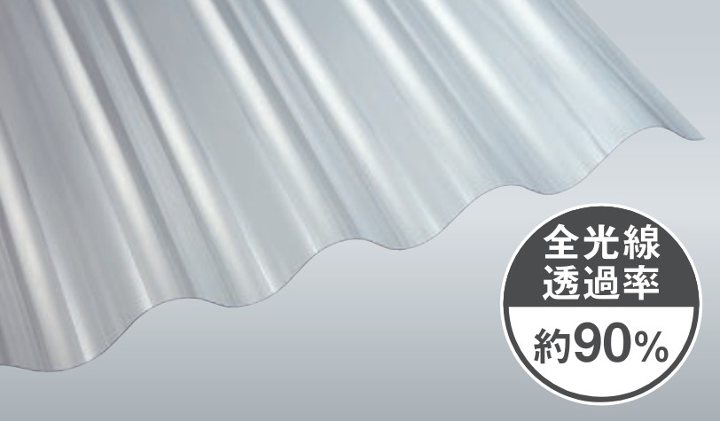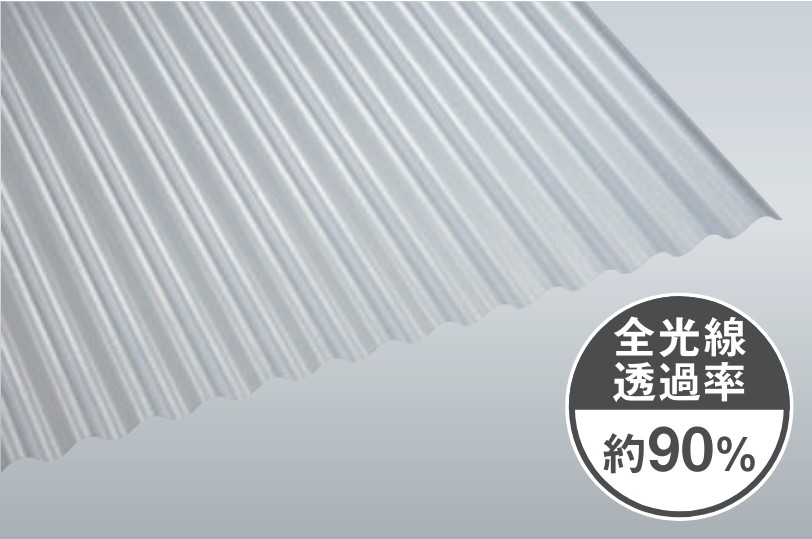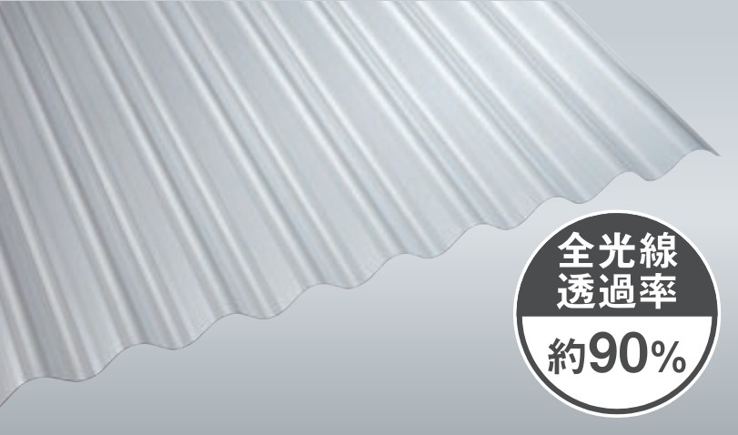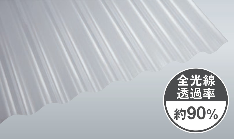 ポリカナミイタ(クリア)の全光線透過率は約90%(0.7mm厚)。