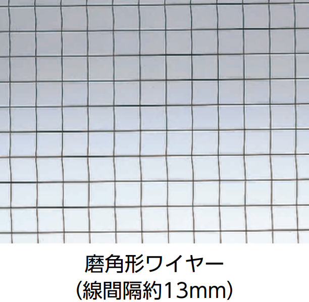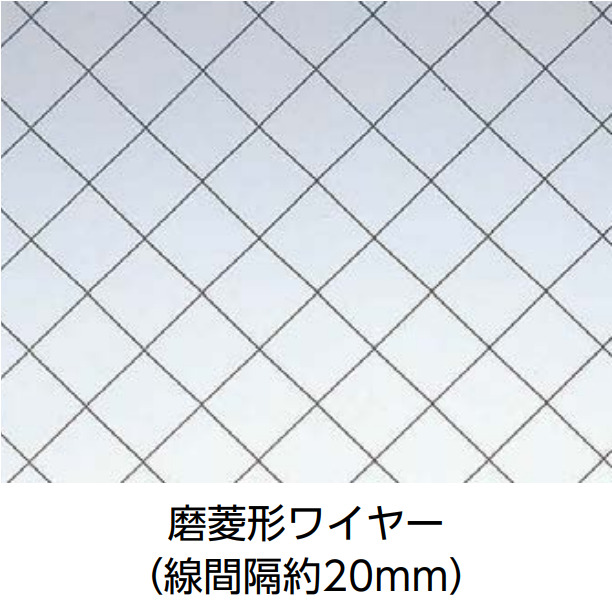 多く普及しているワイヤー入りガラスです。ワイヤーが斜めにクロスし、菱形模様になっています。