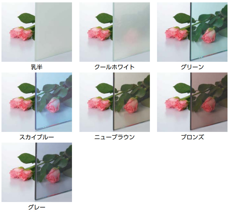 ガラスの間にカラー中間膜を入れ、ガラスに色味をつけることができます。