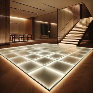 小さなお子様からご年配の方まで、安心して歩行できる安全なガラス床材なので、床下の展示や、床下照明など、豊富なデザインで様々な場面に利用できます。